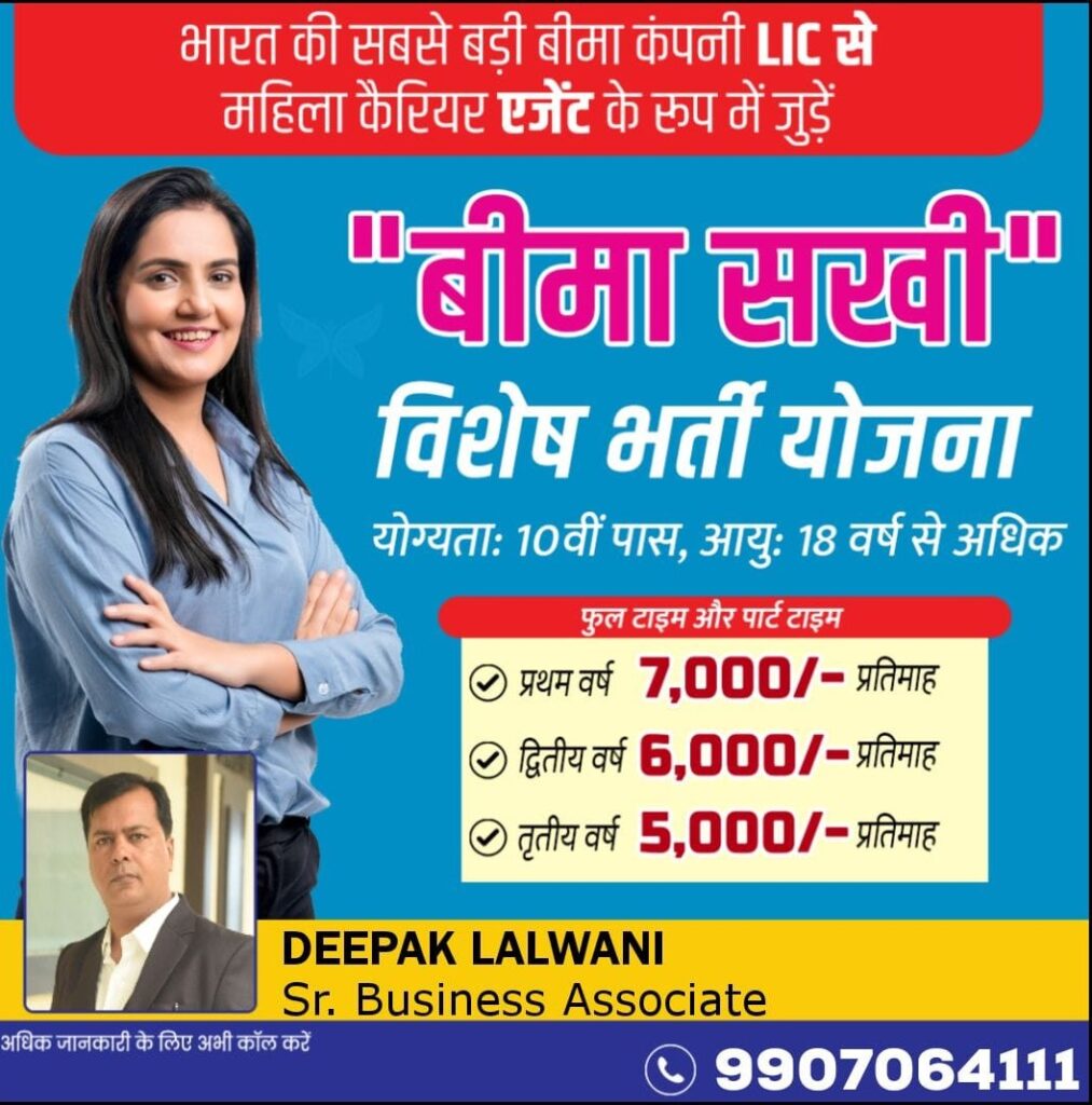 Step into financial independence and empowerment with LIC’s Bima Sakhi program – a special opportunity for women to build a rewarding career while securing lives. As a Bima Sakhi, you not only earn income but also become a respected advisor in your community. Join us today and be the change you wish to see!